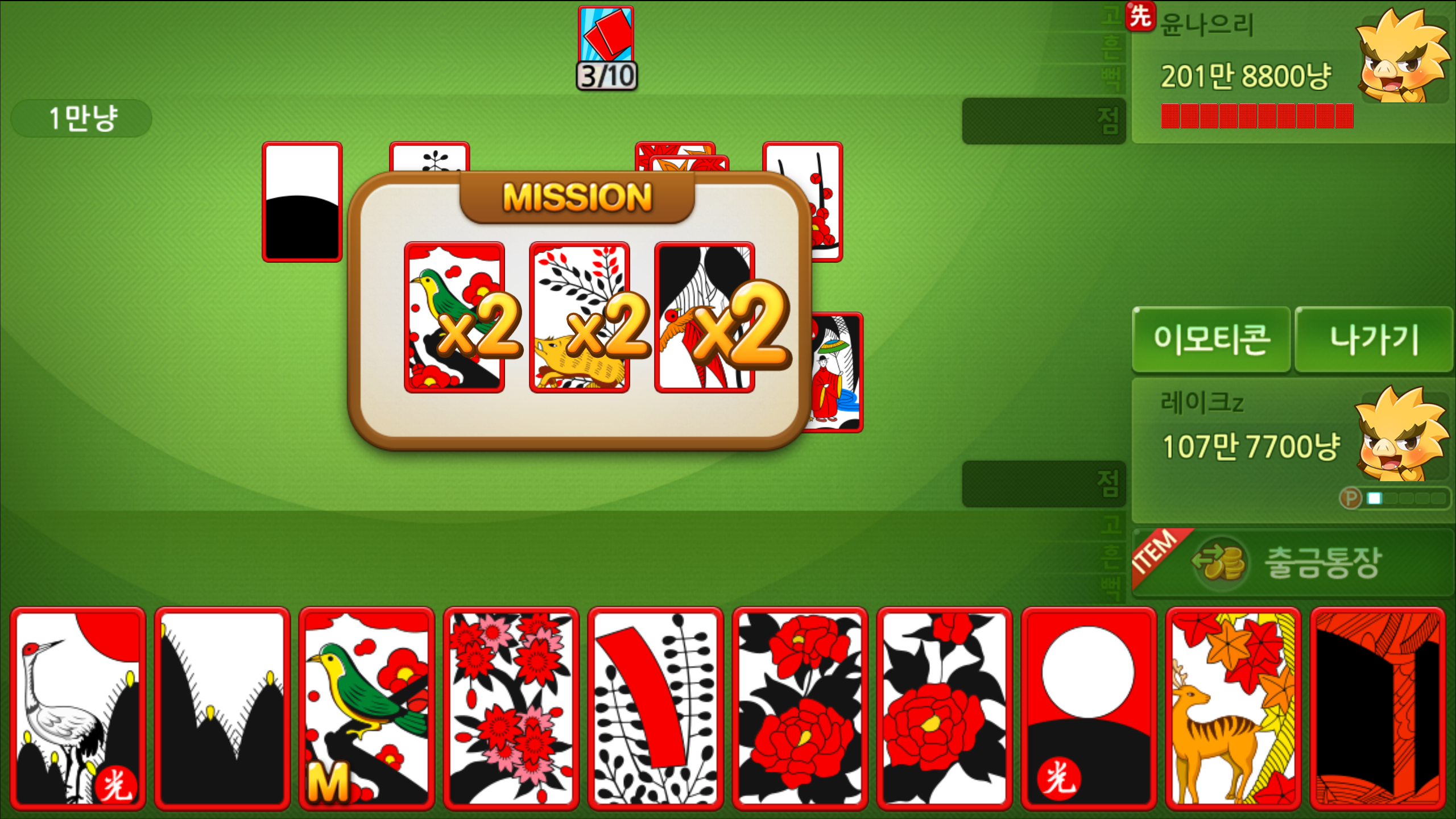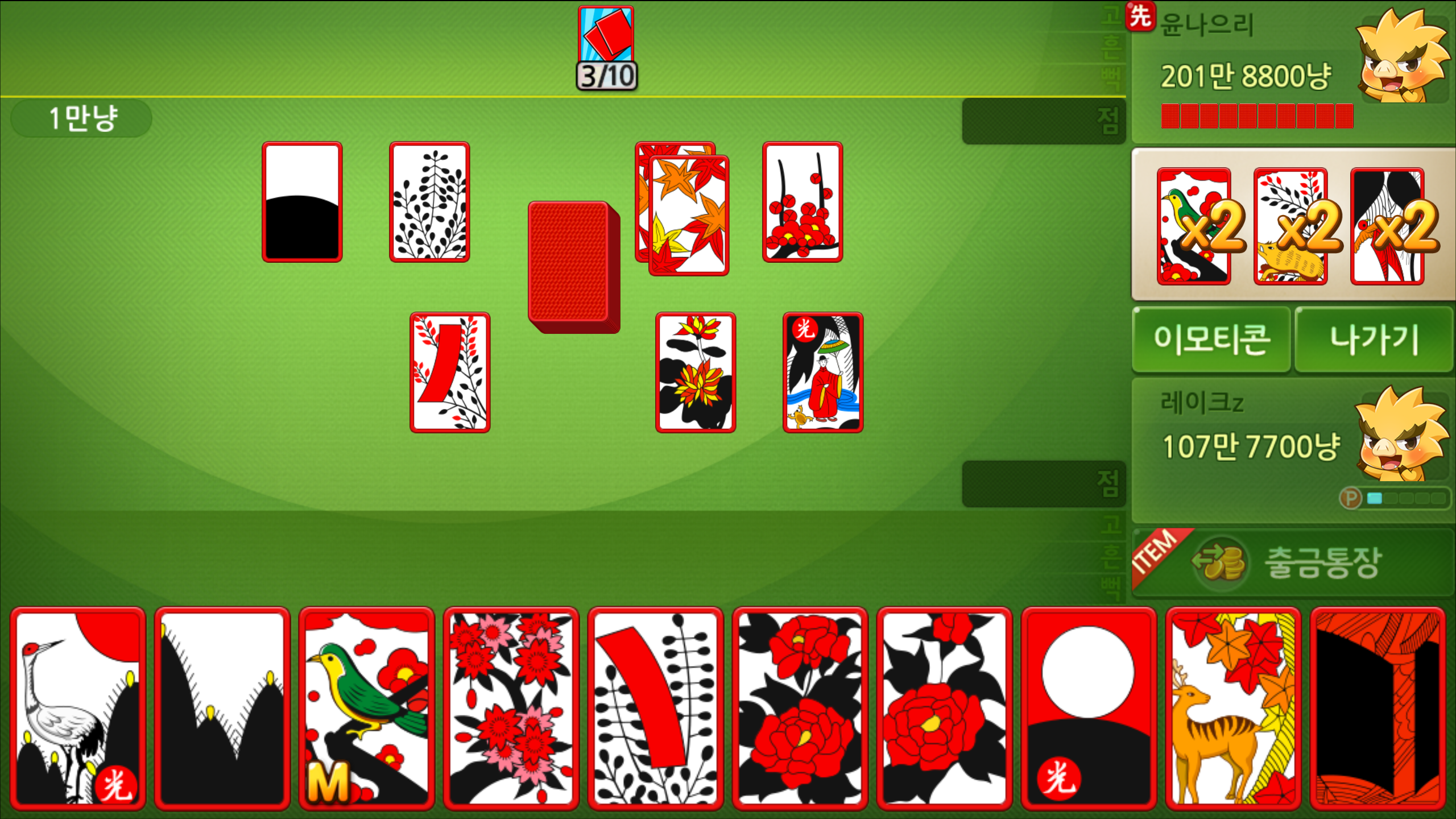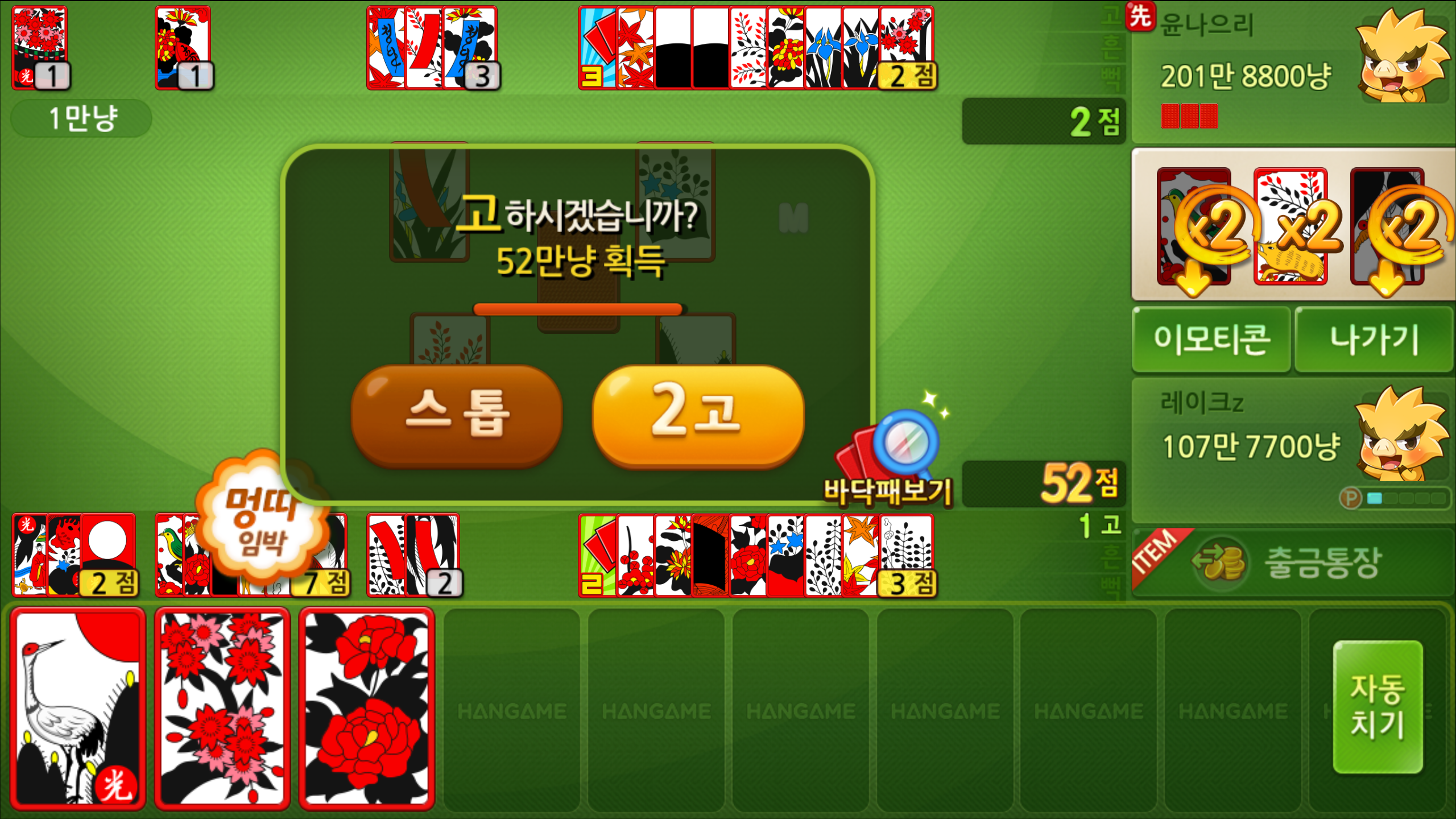 한게임맞고의 경우 점수를 내는데 집중해야 하는 만큼 바닥에 있는 것과 손에 쥐고 있는 것 들을 잘 조합하고 상대가 가지고 있는 것 까지 파악을 해야 합니다. 이말인즉 순간의 선택이 중요한데요, 될까 말까 고민하던 찰라 쭉 이어가도 되겠다는 생각에서 달리기 시작했습니다.