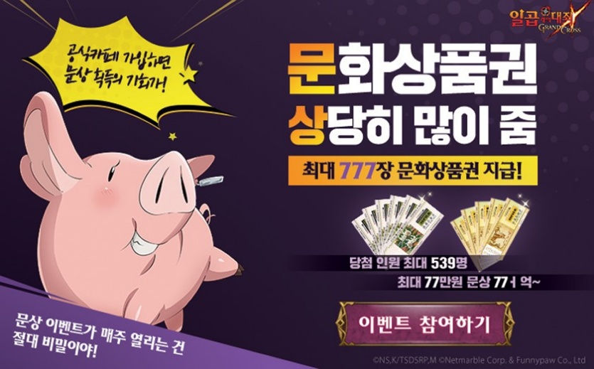 앞서 공식카페 3만명을 돌파하면 주어지는 숨겨진 보상이 해당 인원을 돌파함에 따라 공식카페에서 추가적으로 문화상품권을 지급하는 이벤트가 열리고 있습니다. 4만명, 5만명, 6만명 그리고 7만명까지 가입자 인원에 따른 문화상품권을 선물로 받을 수 있는데요, 현재 5만명을 돌파 200명에게 추첨을 통해 문화상품권을 지급 될 예정입니다. 지금 상태라면 7만명까지도 금방 넘어설 것 같아 공식카페 가입도 필수 입니다.