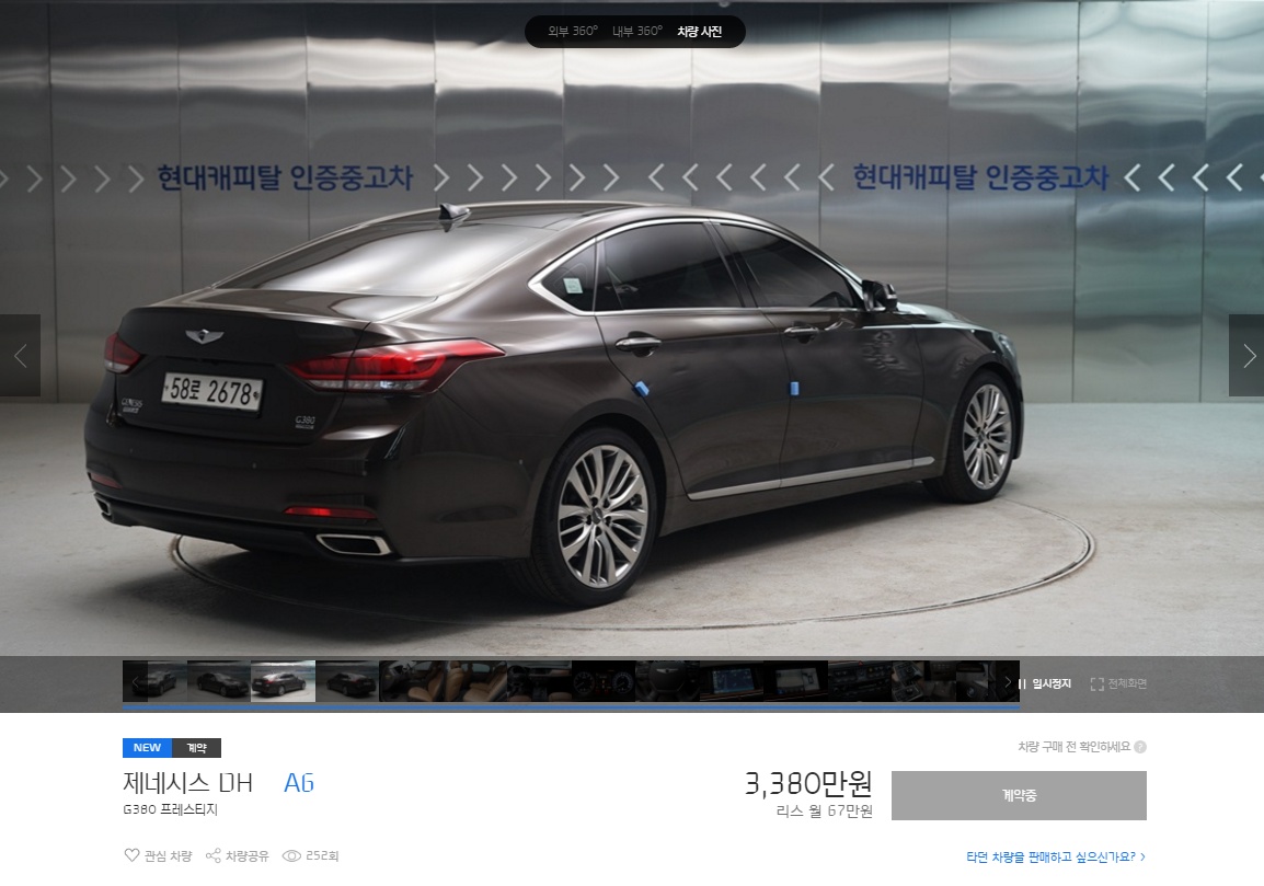 제네시스 DH A6를 선택 살펴보니 주행거리 부분이라던가 현재 차량 외관까지 확인 가능한 것은 기본 차량 사고이력과 주행거리 그리고 운행품질까지 한눈에 확인할 수 있었습니다. 아쉬운 점이 있다면 현재 계약중인 상태이기 때문에 계약이 불발되어야만 컨택 가능하다는 점인데요, 아쉽지만 오프매장 방문시 헛걸음하는 일이 생기지 않기 때문에 다른 차량을 선택할 수 있는점이 마음에 들었습니다.