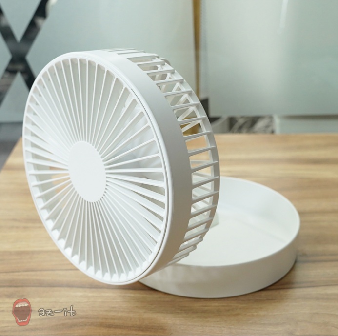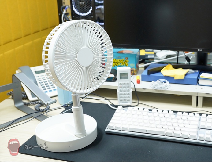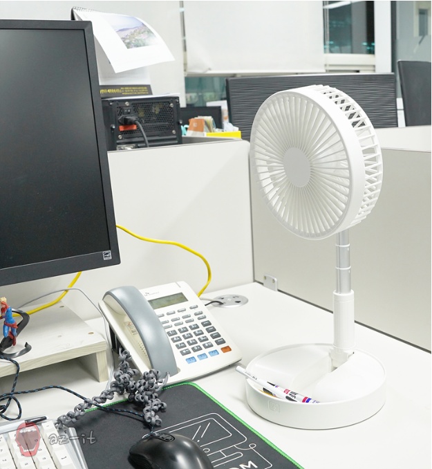 폴딩 미니 선풍기를 선택한 여러 이유 중 큰 부분은 바로 폴딩한 채로 보관하거나 휴대할 수 있다는 점입니다. 폴딩된 상태에서 높이는 10cm가 채 안되기 때문에 가방이라던가 서랍에 쏙 넣어 보관하거나 휴대가 가능합니다.