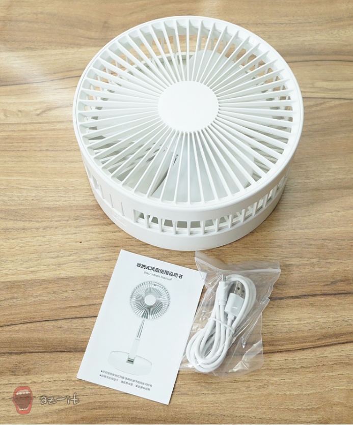 구성품도 무척 간단합니다. USB케이블과 선풍기 본체 그리고 사용설명서가 포함되어 있습니다. 사용설명서의 경우 별도의 한국어가 없지만 그림만으로도 충분히 확인하고 사용 할 수 있을 정도로 사용 방법이 간단합니다.