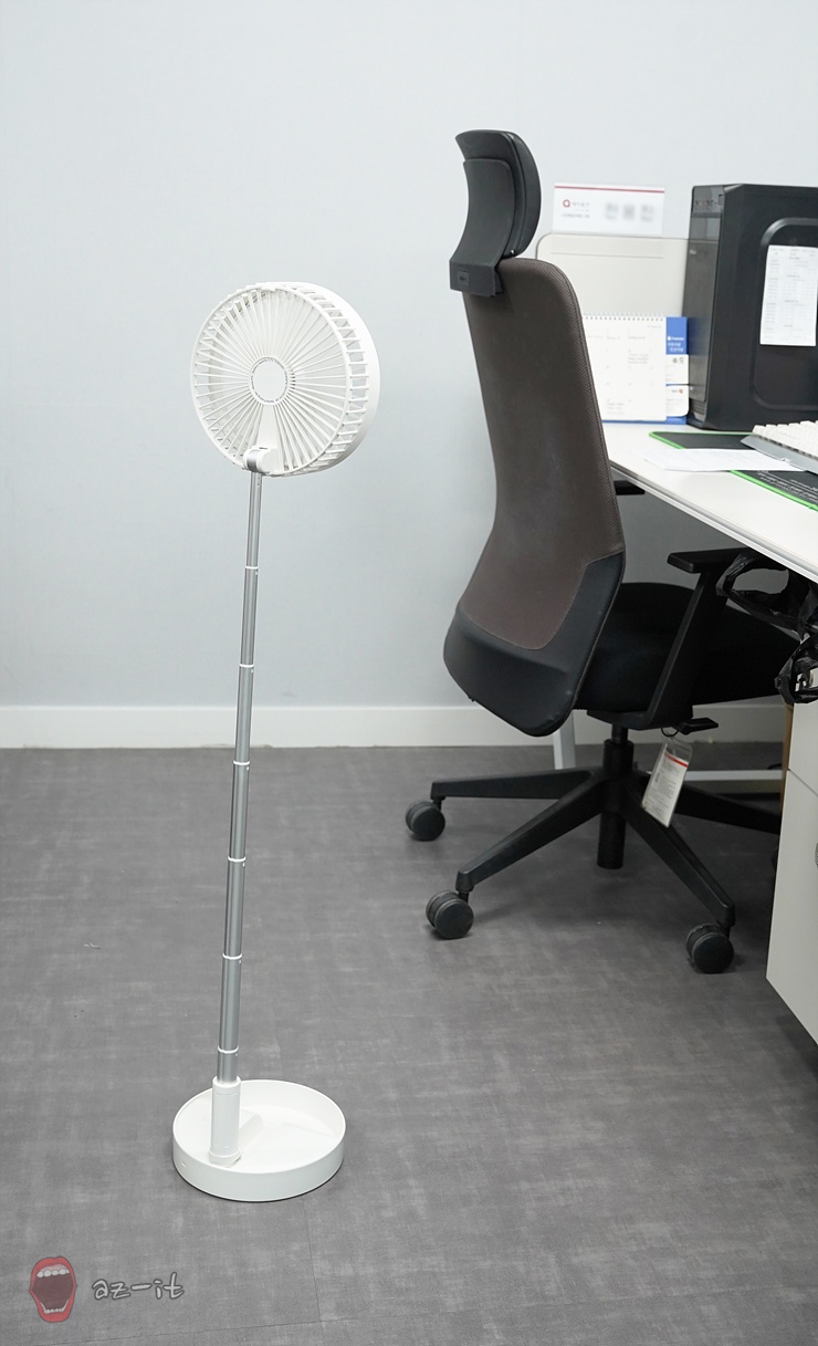 폴딩 미니 선풍기는 폴딩이 가능해 이동은 기본 보관도 쉽게 가능하고, 스탠딩이 되기 때문에 높이에 따른 아쉬움도 없는 듯 보였습니다. 실제 36cm의 낮은 높이부터 1m 높이까지 자유롭게 선택 사용 가능합니다. 배터리 용량 역시 최대 10시간까지 사용 가능합니다.