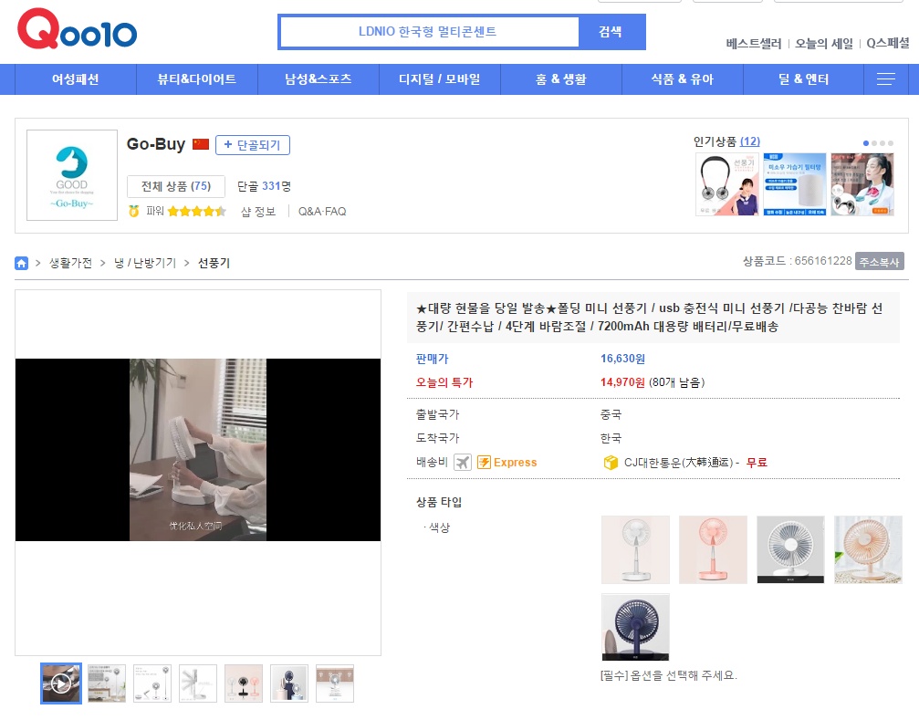 해외직구 사이트 큐텐을 통해 3만원대 비용으로 구입한 폴딩 미니 선풍기. 직접 구매하고 사용해 보니 가성비 부분에 있어 이만한 제품이 또 있을까 싶을 정도로 만족도가 상당할 정도 입니다. 올 여름 어느 위치든 케이블 제약 없는 시원한 바람이 필요하신 분들이라면 서둘러 큐텐에 접속 확인해보시기 바랍니다