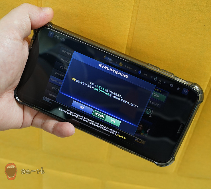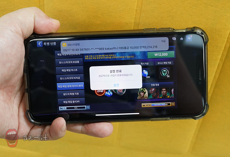 지불 방법도 선택했으니 이제 필요한 아이템을 구매하기만 하면 되는데요, 필요한 아이템이 맞는지 재차 확인하고 측면 버튼으로 확인 후 결제를 눌러주면 설정되어 있는 카카오페이를 활용한 아이템 구매가 완료됩니다.