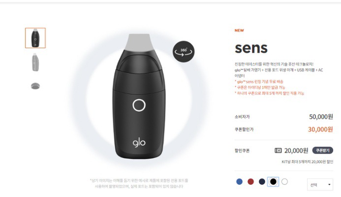 글로센스 구매는 글로 홈페이지를 통해 가능합니다. 소비자가와 쿠폰할인가 동시에 확인되어 구매 금액을 빠르게 확인할 수 있는데요, 키트당 최대 5개까지 할인을 받을 수 있습니다.