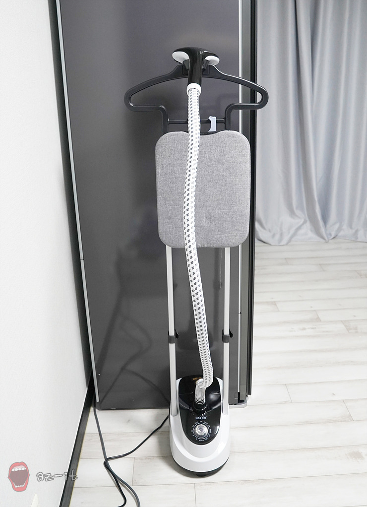 스탠드형 스팀다리미를 사용하는데 있어 아쉬운 점이 있다면 바지 주름을 잡아주거나 약간의 힘을 주어 다림질이 필요한 경우 지지할 수 있는 곳이 없다는 점인데요, 오스나 아이프론의 경우 다림판이 함께 있어 주름을 잡아주기에도 좋고, 면직이나 모직같은 옷을 다림질 하기에도 지지대가 있어 유용합니다.