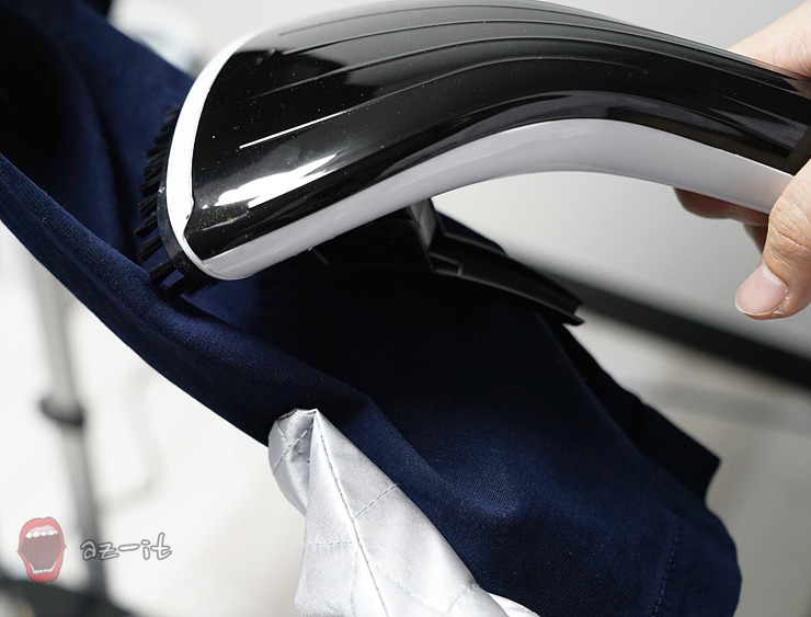 조금은 두꺼운 옷을 꺼내어 다림질을 해보았습니다. 눈에 띄는 먼지들이 많아 먼지제거에 사용되는 브러쉬를 장착하고 다림질을 진행해주었는데요, 눈에 띄는 먼지들이 브러쉬에 붙어 보다 깔끔한 다림질을 할 수 있었습니다.