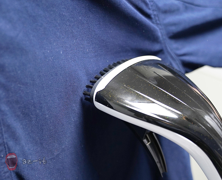 조금은 두꺼운 옷을 꺼내어 다림질을 해보았습니다. 눈에 띄는 먼지들이 많아 먼지제거에 사용되는 브러쉬를 장착하고 다림질을 진행해주었는데요, 눈에 띄는 먼지들이 브러쉬에 붙어 보다 깔끔한 다림질을 할 수 있었습니다.