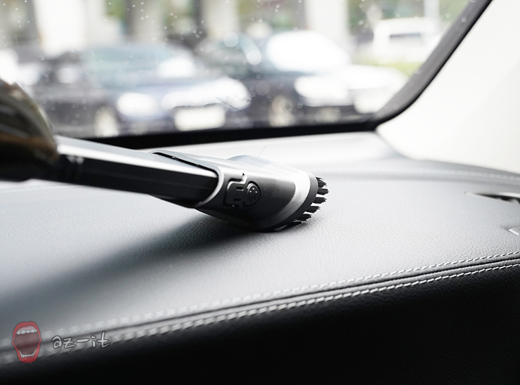 본체에 부착해 사용하는 액세서리의 경우  하단에 브러쉬가 부착되어 있는 모습입니다. 브러쉬는 바닥이나 시트에 떨어진 이물질이나 먼지를 모아주는 역할을 해주어 놓치는 곳이 없도록 해주는 역할을 하거나 틈새를 청소 할 때 유도리 있게 사용할 수 있었습니다.