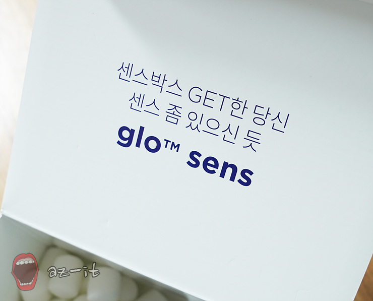 센스박스 속 작은 상자에는 글로센스와 액상포트 수납이 가능한 파우치가 들어있었습니다. 파우치 역시 스마트폰 홀더와 같은 디자인으로 구성되어 있어 부담스럽지 않고 수납과 휴대가 용이해 편리해 보였습니다.