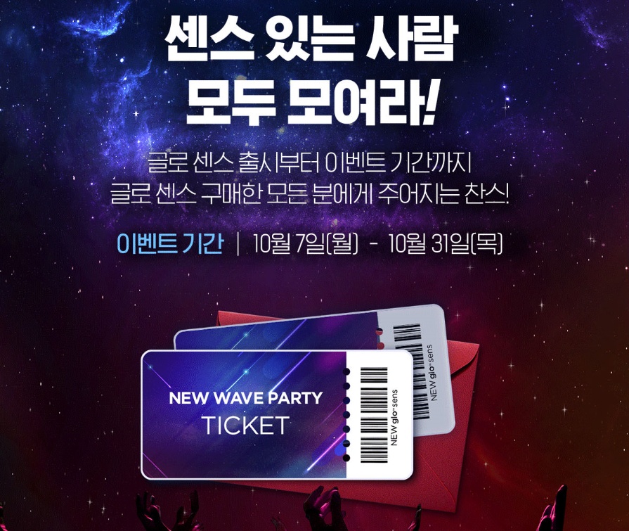 루플라 뉴웨이브파티는 글로센스 출시부터 이벤트 기간까지 글로센스를 구매한 모든분에게 주어집니다. 이벤트 기간은 오는 10월 31일까지로 기간 내에 제품을 구입한 후 이벤트에 응모 참여할 수 있습니다. 이미 구입한 분들이라면 누구나 지금 바로 이벤트에 참여할 수 있습니다.