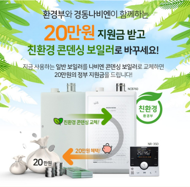 콘덴싱보일러 지원사업을 받아 교체를 마음 먹었다면 어떤 제품으로 하는게 좋을까 고민되기 마련입니다. 실상 이런 고민은 쉽게 해결이 가능한데요, 바로 경동 나비엔 콘덴싱보일러가 있기 때문입니다.