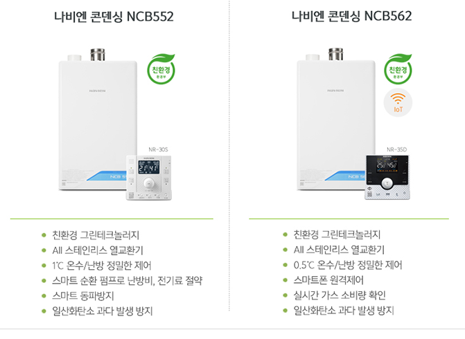 실제 사용하는 입장에서도 여러 장점이 적용합니다. 우선 비용적인 부분에 있어서도 절감효과를 볼 수 있는데요, 에너지효율 1등급의 나비엔 콘덴싱보일러를 사용할 경우 일반보일러와 비교했을 때 최대 28.4%의 가스비를 절약할 수 있어 생활비를 아끼는데 큰 도움을 받을 수 있기도 합니다.