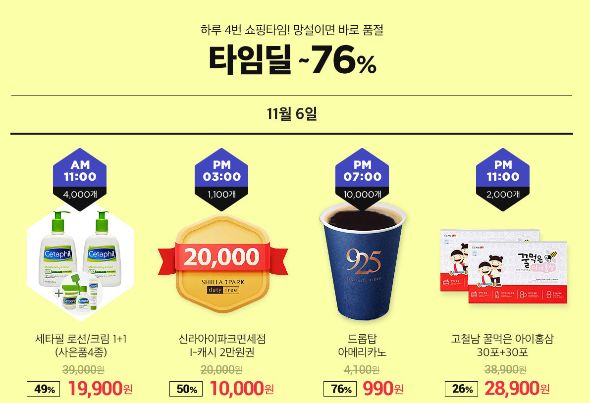 이번에 11번가 십일절 행사는 11번가 11주년을 맞이해 지난해보다 더 규모가 커지고, 다양한 이벤트도 많이 진행되고 있습니다. 십일절 기간 동안 매일 진행되는 타임딜의 경우에도 종류도 다양하고 준비된 수량도 많아서 도전해 볼만 하구요.