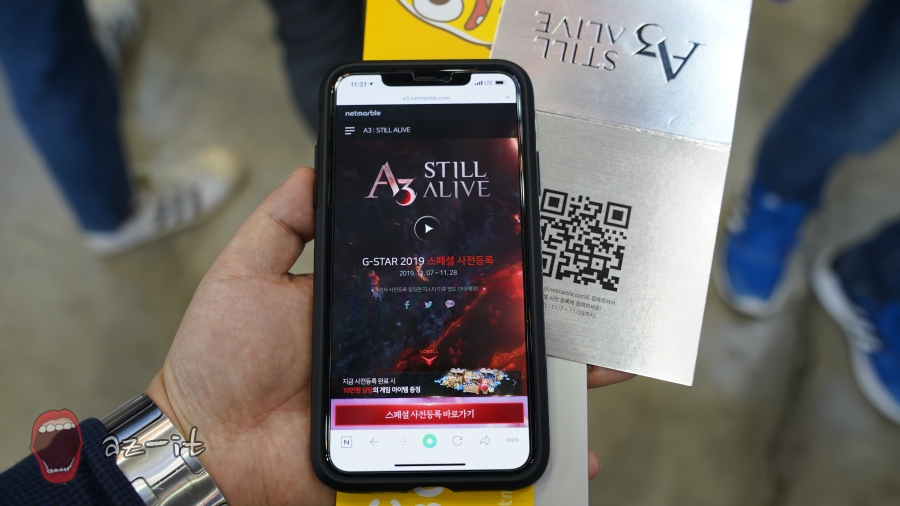 지스타 넷마블 A3 현장에서는 스페셜 사전등록 행사도 진행되었습니다. 사전등록에 참여하고, 현장에서 인증을 받으면 갤럭시액티브2부터 에어팟2, 브리츠 블루투스 헤드셋등 다양한 선물을 받을 수 있는 기회가 주어졌습니다. 여기에 현장에서만 받을 수 있는 A3 쿠폰은 덤이고 말이죠.