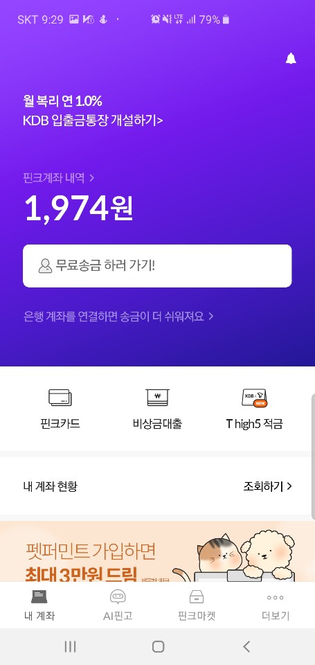 소비패턴을 분석해 동일한 나이와 성별 그룹의 소비패턴과 비교해 볼 수도 있고, A핀고와 채팅을 통해 다양한 해시태그를 활용한 소비 특성 분석도 가능합니다. 또한 핀크마켓을 통해 예적금부터 카드, 대출, 투자 보험등 일상 생활에 필요한 금융상품을 제한해주고 있어 혜택이 큰 금융상품에 바로 가입이 가능합니다.