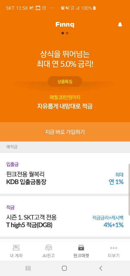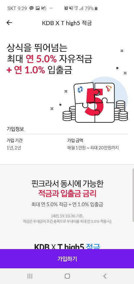 핀트 T high5 적금이 제공하는 5%의 금리 혜택은 단 5주간만 진행되어 이후에는 선택할 수 없는 일시 상품이기 때문에 적금 가입을 고민하고 있다면 조금 서둘러야 할 필요가 있습니다.