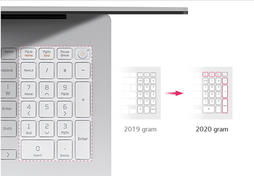 키보드 배열 중 숫자 키보드 배열이 달라진 점도 특징입니다. 기존 3열로 구성되어 있던 키보드 배열을 4열 풀배열로 변경되었습니다. 이번 4열 풀배열 변경의 경우 숫자 키보드를 누르다 필요한 기호나 엔터 버튼을 누르기 위한 번거로운 상황이 없어져 보다 편리합니다.