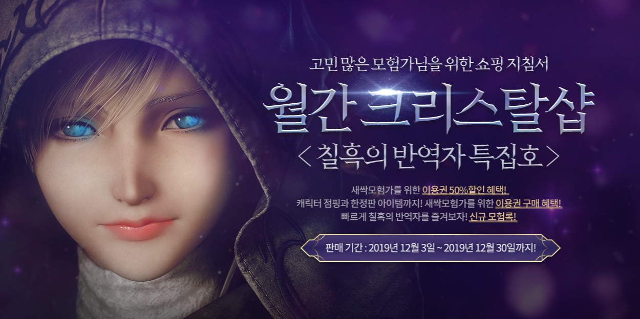 업데이트 기념 월간 크리스탈샵에서도 특별한 선물이 준비되어 있습니다. 특히 신규 유저들이라면 눈여겨 봐야하는 선물들이 상당한데요, 이용권 50% 할인 혜택과 함께 캐릭터 점핑과 한정판 아이템 그리고 이용권 구매 혜택과 함께 신규 모험룩을 제공해 준다고 합니다.