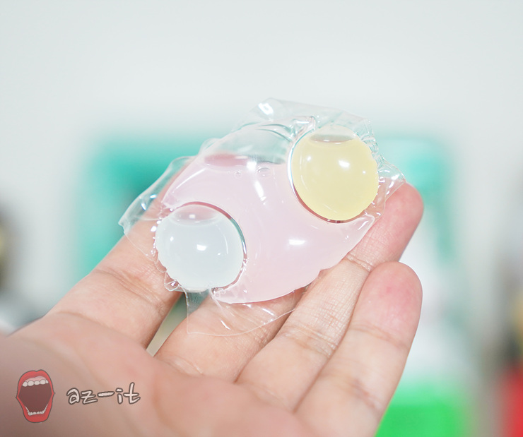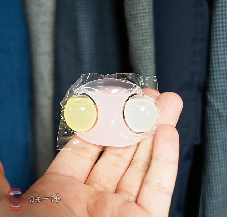 내용물을 살펴보면 캡슐세제 이름 처럼 동글동글한 파스텔톤의 세제가 각각의 공간에 들어 있는 모습을 확인할 수 있습니다. 내용물을 보면 고농축 세제 6배를 한알에 넣어두어 세정력을 높여 세제 용량에 대한 고민을 하지 않아도 될 정도 입니다. 뿐만 니라 섬유케어하는 효소를 넣어 섬유유연제효과까지 넣어 세제와 섬유유연제 따로따로 고민하지 않아도 될 정도입니다.