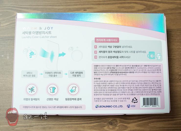 젤리캡슐세제와 함께 사용하는 이염방지시트도 있습니다. 아무래도 빨래를 할때 색깔별로 구분해서 하는 일이 무척이나 번거로운데요, 이런 번거로움을 줄여주는 제품으로 컬러를 가진 옷들의 이염을 방지하는 기능을 가지고 있는 제품입니다.