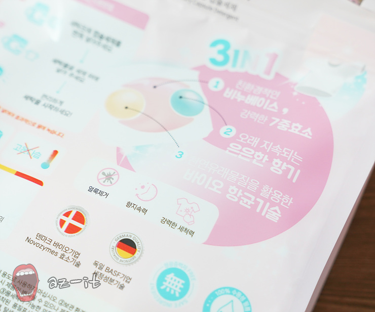 색깔도 디자인도 세제와는 거리가 먼 느낌이다 보니 어린이보호장치를 잘 해두었다고 해도 문제가 생길 수 있는 경우가 있는데요, 아이가 캡슐세제를 입에 넣었을 경우 38초동안 녹지 않아 빠르게 대처가 가능합니다. 또한 기네스에서 가장 쓴맛으로 알려진 비트렉스 성분을 첨가해 삼키지 않고 뱉어내도록 한 점도 칭찬할 만하더군요.