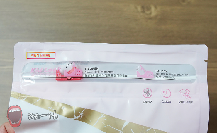 젤리형태의 구슬 모양 내용물 때문에 자칫 아이들이 장난감으로 오인 가지고 놀 수 있는 상황을 미연에 방지하기 위해서 이중 잠금지퍼 파우치 구조로 구성되어 있습니다. 혹시 모를 상황을 미연에 방지할 수 있도록 신경쓴 부분들도 돋보이는 부분입니다.