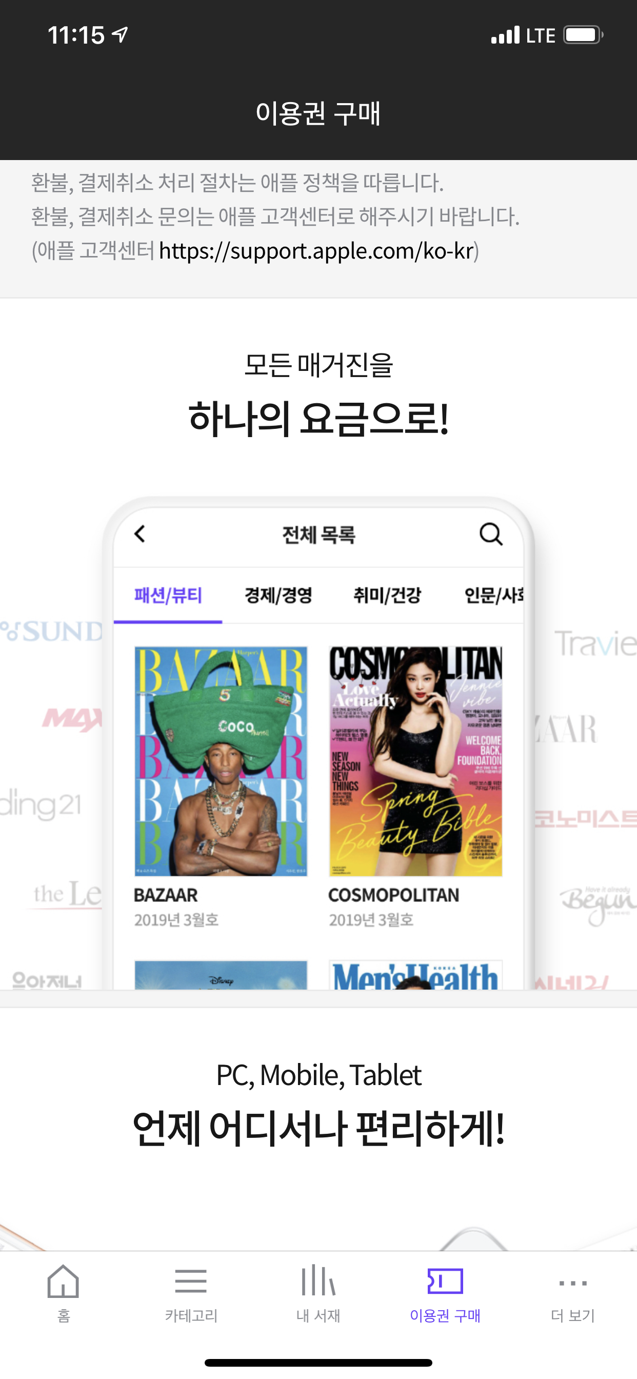 디지털매거진의 경우 라이트 상품을 먼저 사용해보고 결정해도 되는데요, 1,900원 비용으로 7일 무제한 이용권을 구매한 후 둘러보고 마음에 들면 그때 월 이용권을 구매해 사용하는 것도 방법입니다. 아무리 비용이 저렴하다고 해도 실용성이 없으면 안되니까 말이죠.