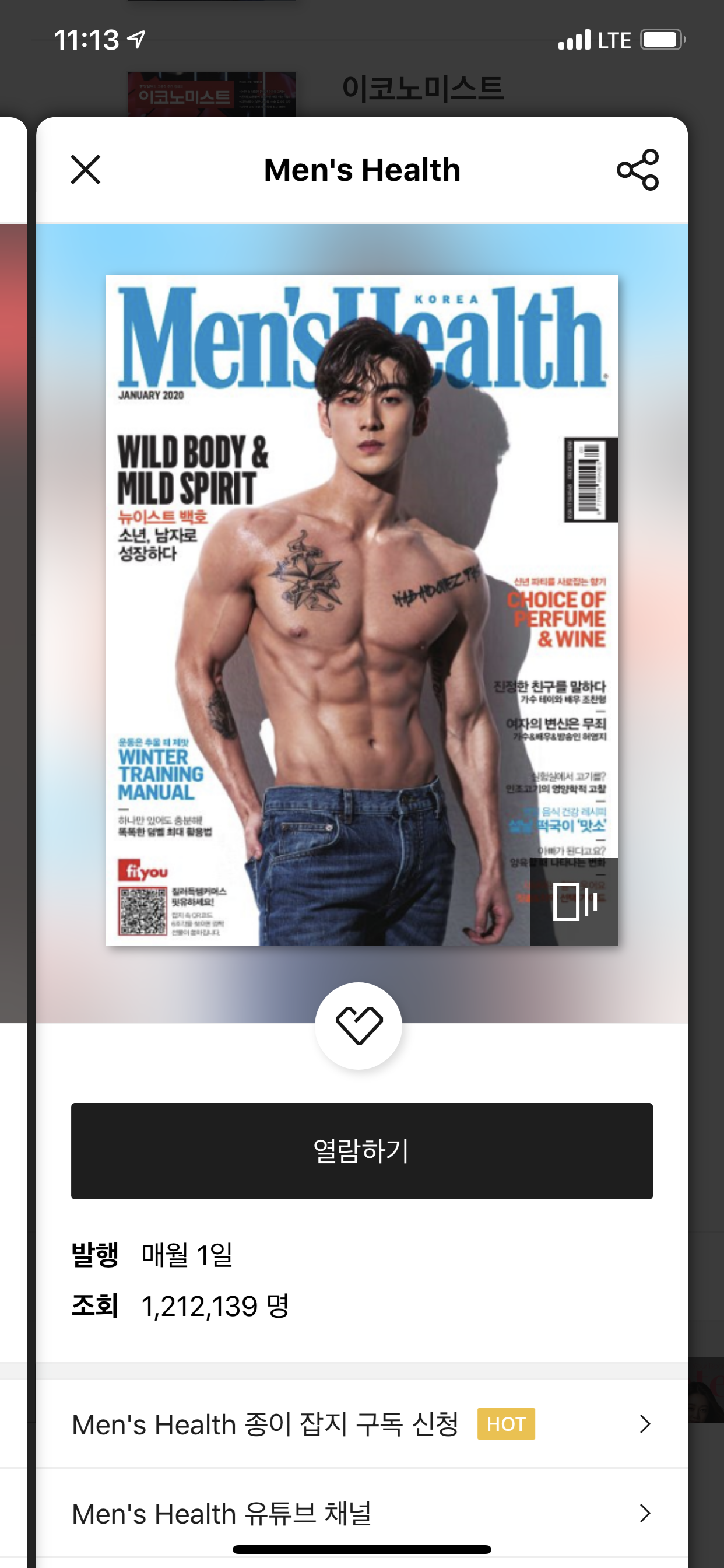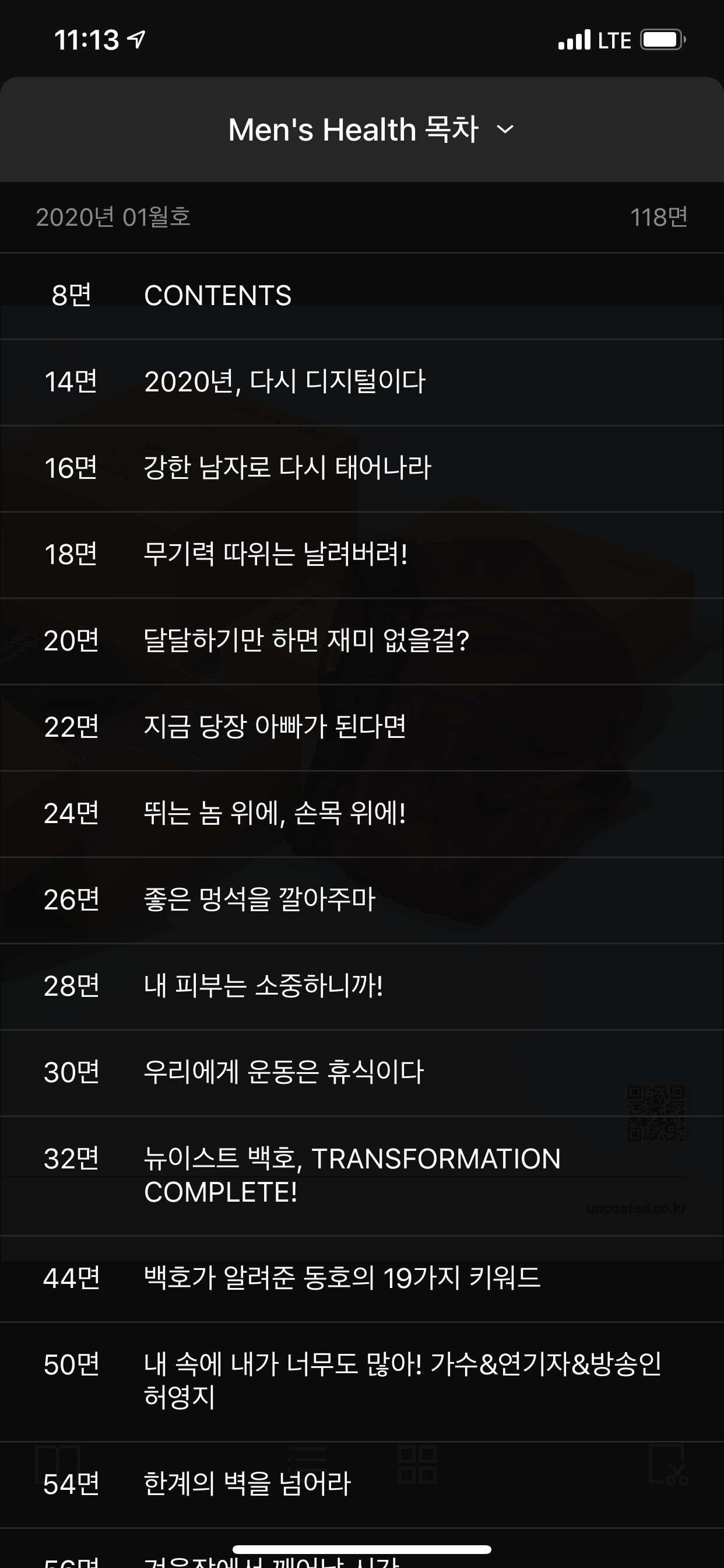 가입과 함께 가장 먼저 확인해본 매거진은 바로 맨즈헬스입니다. 최근 건강에 대한 고민이 많아지면서 이것저것 챙기기 시작한터라 궁금한 것들이 많았는데요, 목차부터 확인 필요한 부분들을 빠르게 선택하고 먼저 읽어볼 수 있어 불필요한 시간을 줄일 수 있었습니다.