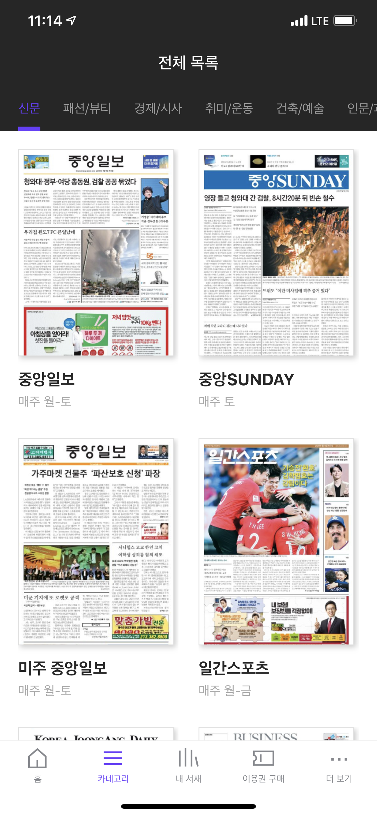 삼성카드 디지털매거진의 경우 맥심이나 맨즈헬스등 다양한 매거진 뿐만 아니라 일간지도 확인할 수 있었습니다. 특히 중앙일보를 챙겨보는 분들이라면 신문에 잡지 여기에 JTBC VOD로 예능에 골프영상까지 시청할 수 있는 만큼 월 5,900원의 비용이 아깝지 않겠다는 생긱이 들더군요.