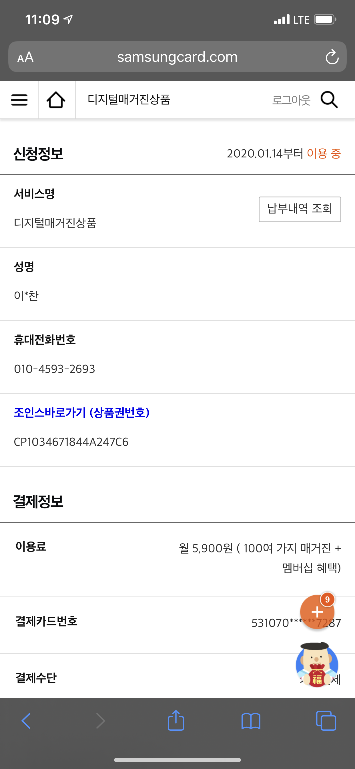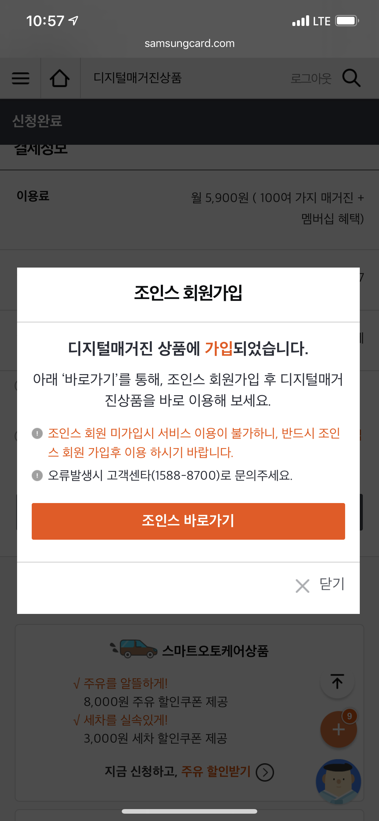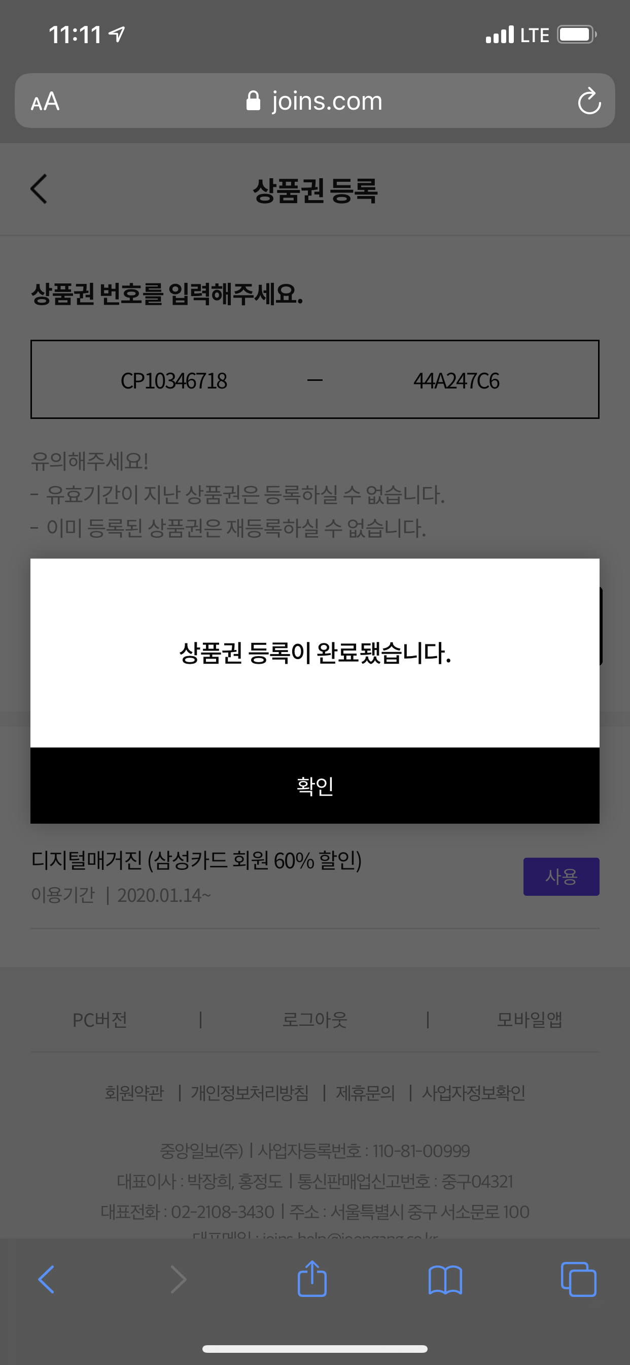 삼성카드를 이용해 디지털매거진을 신청할 경우 최초 1회 상품권번호를 입력해 설정해주어야 합니다. 이때 삼성카드페이지에서 결제한 후 받은 상품권 번호를 조인스로 이동해 넣어주면 이후 별다른 설치라던가 인증 없이 100여개 매거진을 모두 확인할 수 있습니다.