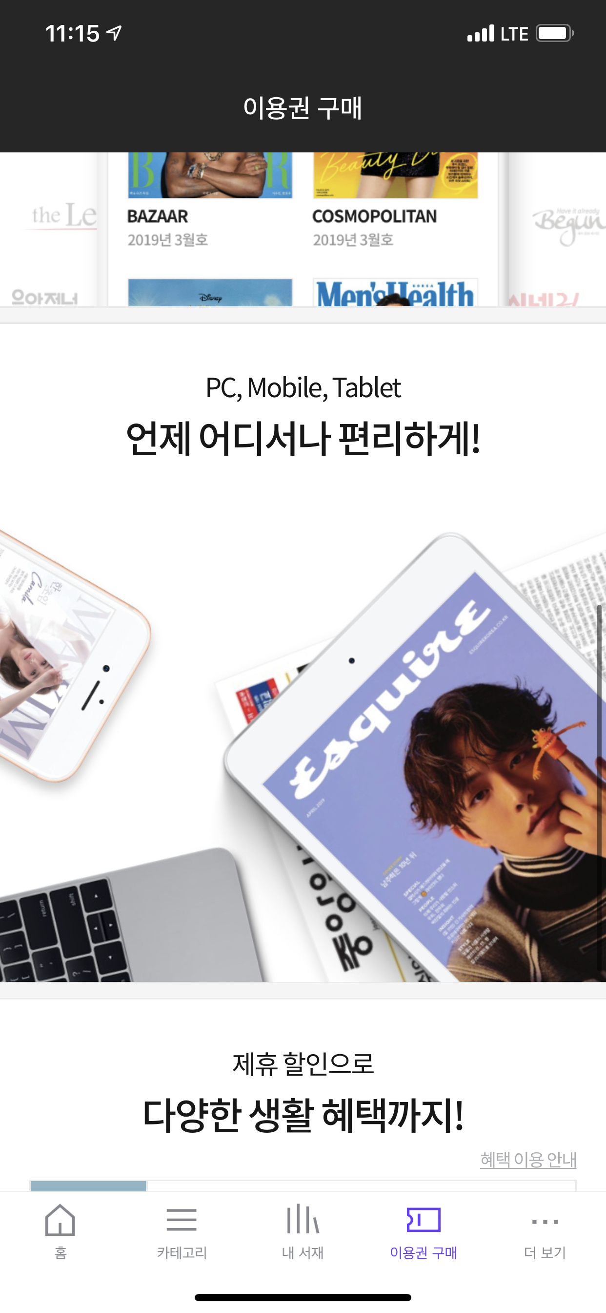 정상가 월14,900원으로 이용 가능한 100여종의 매거진을 월 5,900원의 비용으로 누릴 수 있는 혜택을 그냥 지나칠 수 없는 만큼 서둘러 신청해보았습니다. 보다 할인된 비용도 좋지만 최초 가입시 가입 다음달까지 이용료가 무료라고 하니 더욱 마음에 들더군요.