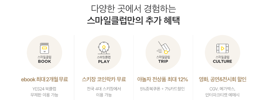 스마일클럽이 되면 G마켓과 옥션 그리고 G9에서만 혜택을 받을 수 있는 것이 아니라 전국 4대 스키장을 포함해 야놀자 할인, 영화, 공연&전시회 할인 등 다양한 곳에서 혜택을 받을 수 있습니다. 할인부터 시작해 포인트 적립 그리고 다양한 곳의 혜택까지 감안한다면 스마일클럽 선택 안할 수가 없겠지요?