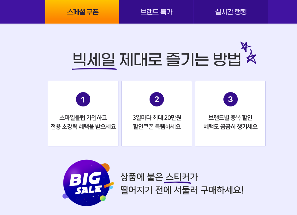 G마켓 세일을 알차게 받고 싶다면 스마일클럽에 가입하고 전용 초강력혜택을 받는 것을 추천드립니다. 3일마다 최대 20만원 할인 쿠폰을 지금하는 것을 비롯해 브랜드별 중복할인 혜택도 주어지기 때문입니다. 무엇보다 BIG SALE 스티커가 붙은 상품이라면 선결제 후고민이 답인것 같습니다.