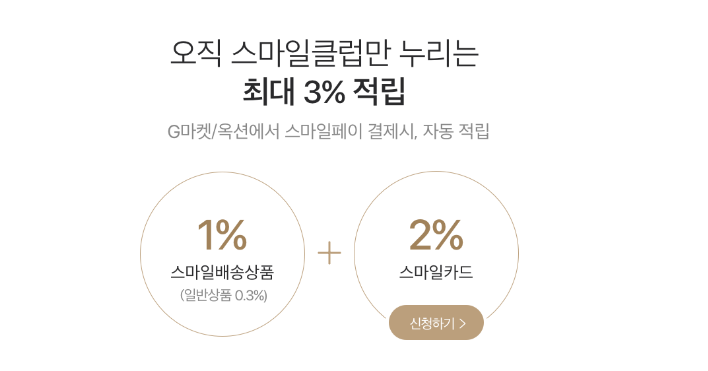 스마일클럽에 가입할 경우 적립도 달라지는데요, 일반 상품의 경우 0.3%에 해당하는 비용만 적립되는 반면, 스마일 배송상품은 1%에 해당하는 적립금이 자동적립됩니다. 여기에 스마일카드를 만들어 사용하면 2% 추가 적립고 가능해 쓴 만큼 되돌려 받는다고 해도 과언이 아닐정도이고 말이죠.