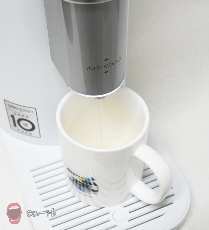 LG 퓨리케어 상하좌우 정수기는 자동 컵 센싱 기능으로 출수구 부근 센서가 용기의 높이를 감지해 제품 스스로 출수구 높낮이를 자동으로 조정하는 기능을 갖추고 있어 다양한 종류의 용기를 사용하더라도 물이 주변에 튀는 걱정 없이 깔끔하고 편리하게 사용 가능합니다.
