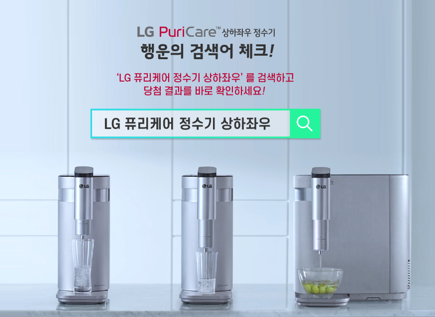 LG전자에서 만나 볼 수 있는 LG전자 퓨리케어 상하좌우 정수기 행운이벤트가 시작되었습니다. 2월 24일부터 시작해 3월 22일까지 진행되는 이번 이벤트는 별도의 어려움 없이 검색만 해도 참여 가능한데요, 매일 1명에게 LG 퓨리케어 미니 공기청정기를 비롯해 풍성한 선물이 주어진다고 합니다.