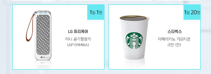 3LG 퓨리케어 상하좌우 정수기 행운 검색 이벤트가 진행되는 3월 22일까지 매일 3번의 참여 기회가 주어져 도전하는 재미가 쏠쏠합니다. 더욱이 당첨자가 매일 나오는데요, 1일 1명에게는 LG 퓨리케어 미니 공기청정기를 1일 20명에게는 아메리카도 기프티콘을 선물로 증정한다고 하니 놓치기 아쉬운 이벤트가 아닐까 합니다.
