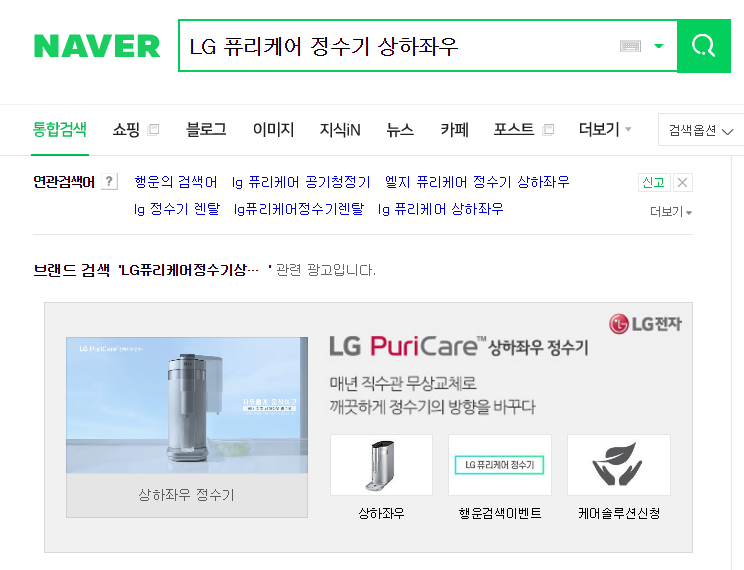 LG 정수기 검색하고 퓨리케어 미니 공기청정기 받자!