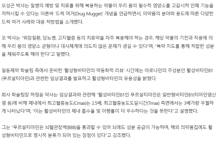 종합활성비타민제로 알려져 있는 아로나민골드에 함유된 푸르설티아민에 대한 생소함이 있어 정말 도움이 될까 하는 마음에 이것저것 검색을 해보았는데요, 뇌혈관장벽(BBB)를 통과할 수 있어 뇌에도 성분 공급이 가능하다는 장점이 있어 뇌피로회복에 많은 도움을 받을 수 있는 것으로 보였습니다.
