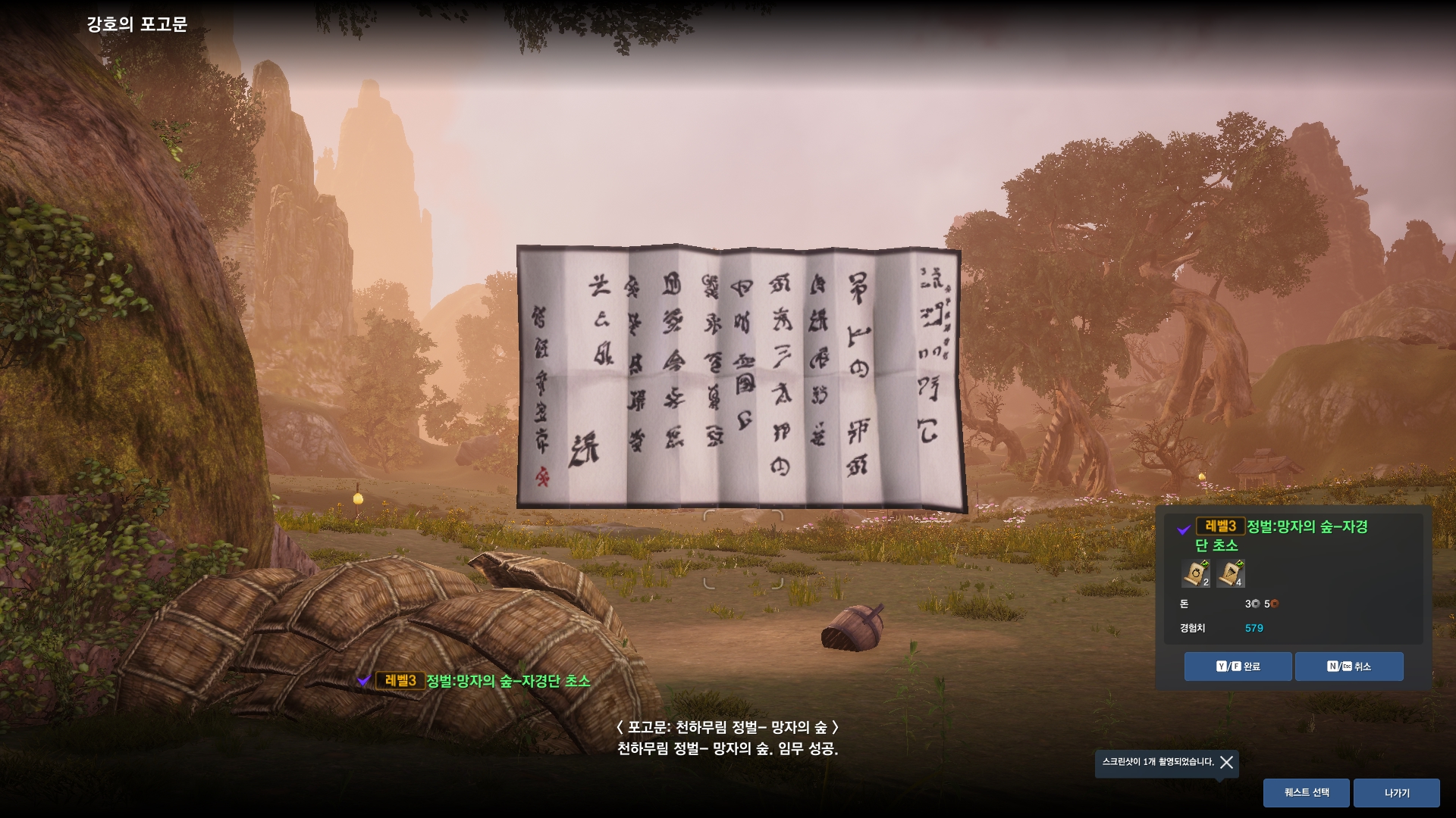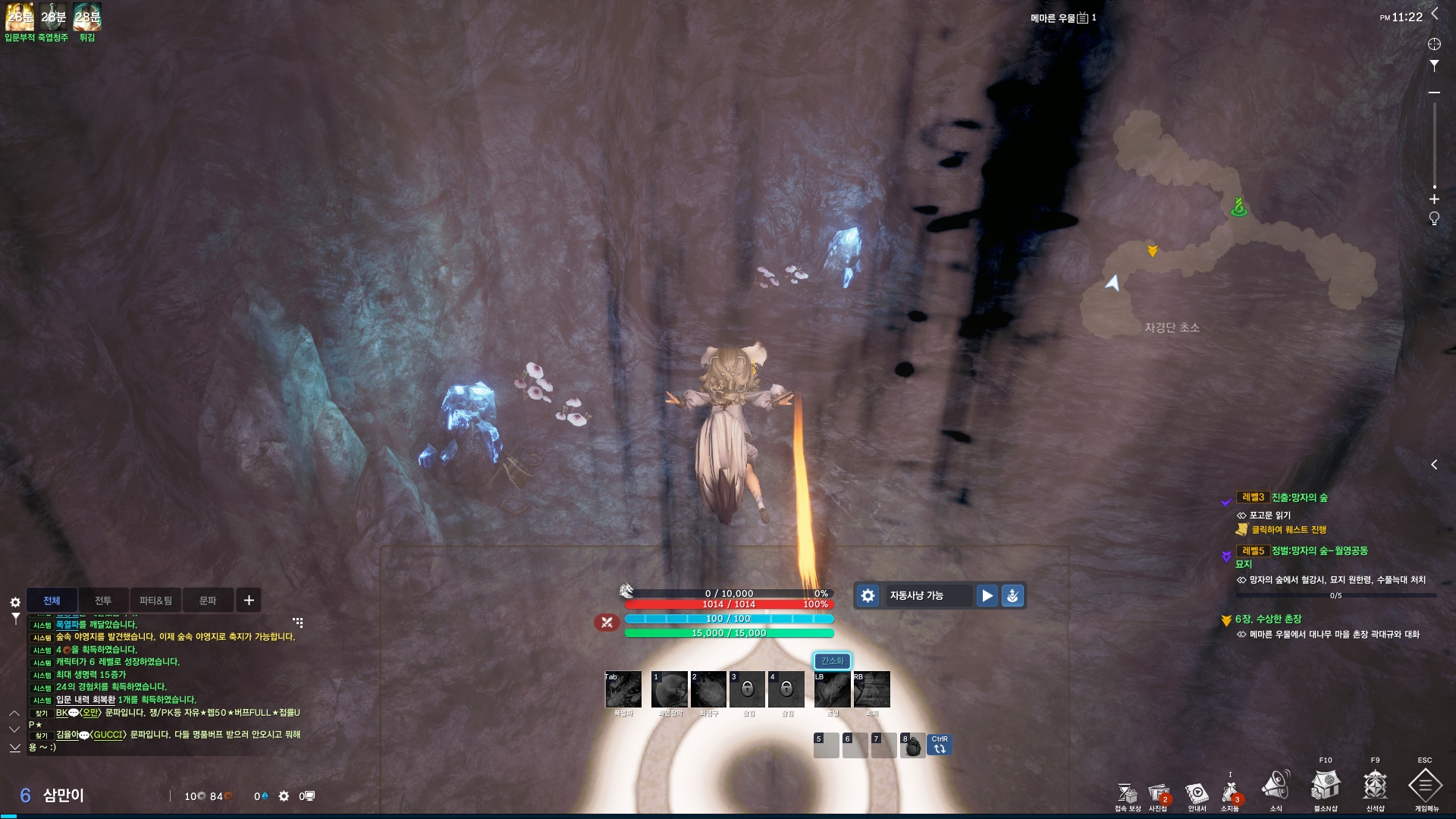 달라진 그래픽과 자동사냥 기능 활성화의 편리함 그리고 천하무림 퀘스트를 통해 빠른 레벨업이 가능하니 초반 별다른 어려움 없이 캐릭터를 육성할 수 있었습니다. 특히 필드 자동사냥이 가능한 점은 수동 사냥이 주는 재미와 자동사냥이 주는 편리함 모두를 갖추고 있다는 점에 있어 좋더군요.