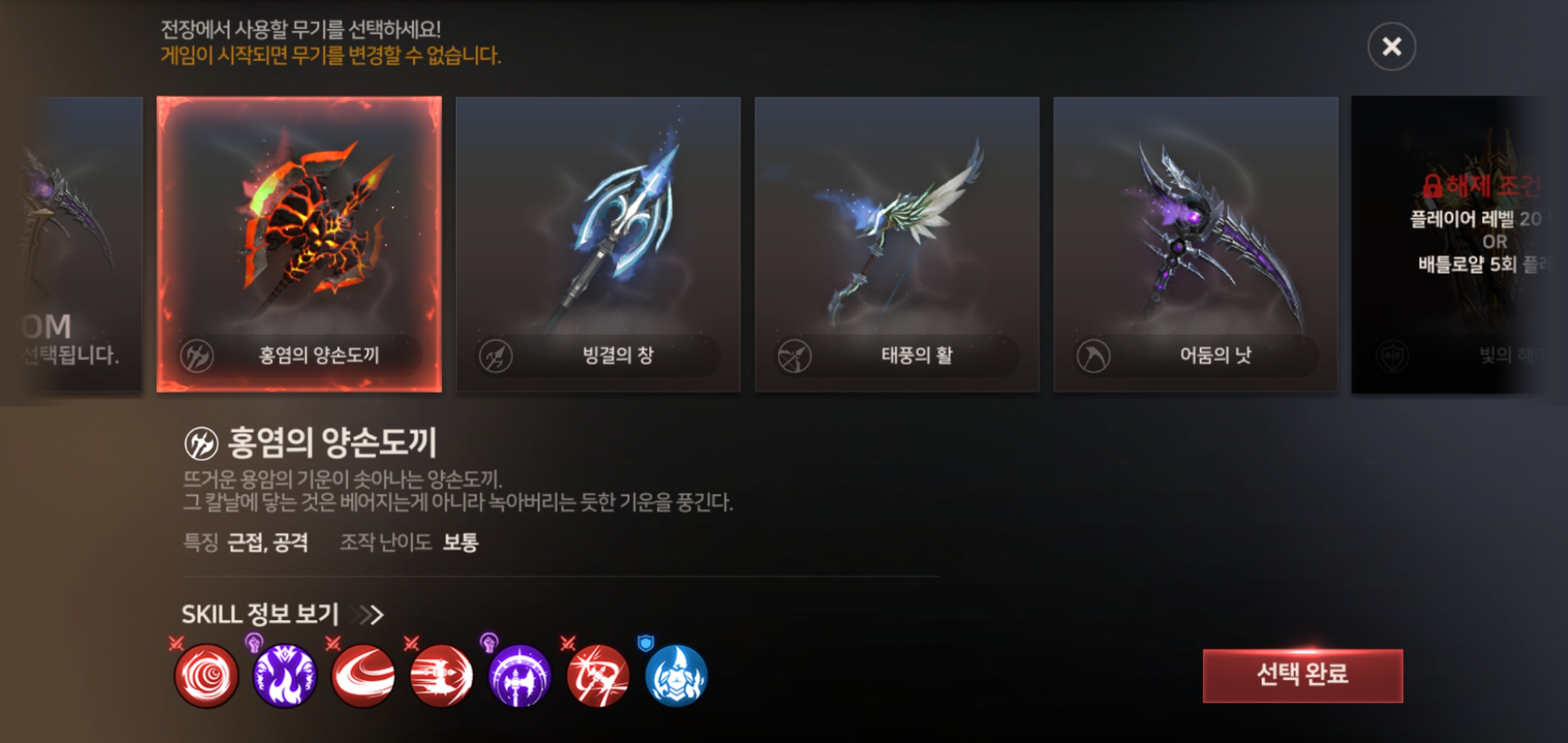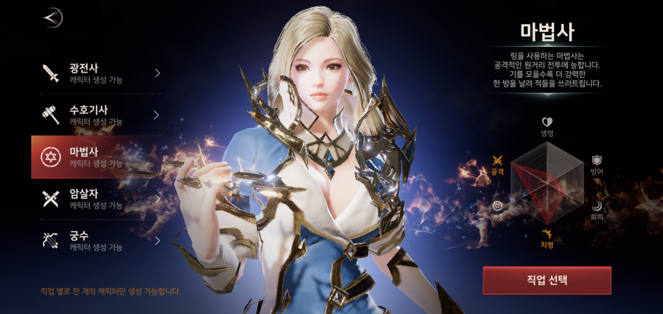 시작과 동시에 선택 가능한 클래스는 광전사, 수호기사, 마법사, 암살자 그리고 궁수까지 준비되어 있어 폭 넓게 선택 할 수 있었습니다. 캐릭터 선택의 경우 본인이 즐겨하는 클래스를 선택하는 것이 좋은데요, MMORPG 뿐만 아니라 배틀로얄 장르까지 진행한다는 점을 감안해 선택하는 것이 무엇보다 중요합니다.