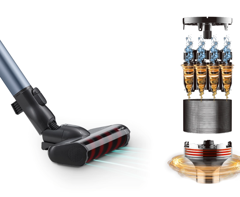 무선청소기를 사용하는데 중요한 요소인 흡입력도 업그레이드 되었습니다. 초고속 스마트 인버터 모터와 2중 터보 싸이클론 성능이 향상되어 기존 A9 대비 40% 이상 업그레이드 되었는데요, 최대 200W의 더욱 강력해진 흡입력으로 깨끗한 청소가 가능합니다.