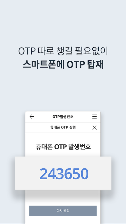 필요한 비용을 송금할 경우 빠지지 않고 챙겨아 하는 것 바로 OTP 카드입니다. 외부 업무 도중 송금할 일이 생기기라도 하면 OTP카드가 없어 난감한 경우가 종종 생기는데요, 케이뱅크 기업뱅킹은 국내 최초 스마트폰에 OTP를 탑재하고 있어 스마트폰 하나만으로 은행업무가 가능합니다.