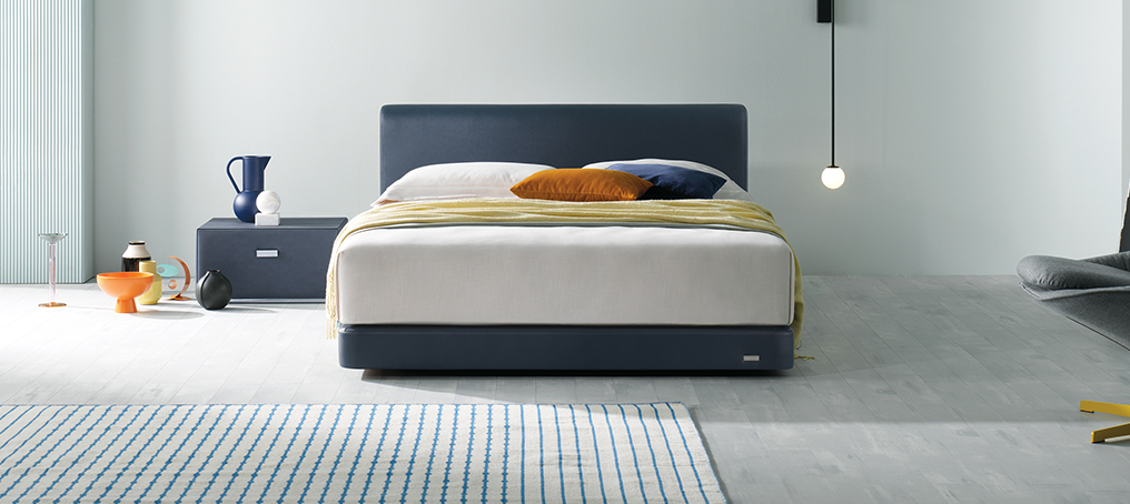 볼드한 라인과 화일드한 헤드보드 역시 트랜디한 디자인을 갖추고 있어 침실을 보다 화사하면서 따듯하게 만들어주는 역할을 톡톡히 하는데요, 무엇보다 컬러에 있어 폴라 네이비 인조가죽과 라이트 그레이 패브릭 투톤 매치가 질리지 않으면서 세련되고 고급스러움을 더한 점이 눈길을 사로 잡았습니다.
