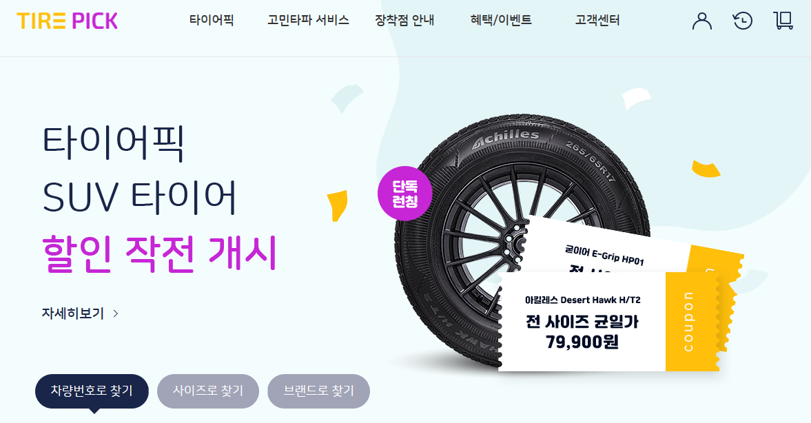 보다 안전한 주행을 위해 꼭 필요한 타이어교체에 있어 제품이나 비용적인 부분에 있어 고민하셨던 분들이라면 타이어핫딜이 진행 중인 타이어픽에서 진행해보시는건 어떨까요? 타이어 주문부터 할인 그리고 장착까지 타이어 교체시 생기는 모든 고민들을 한번에 해결하실 수 있으실테니 말이죠.