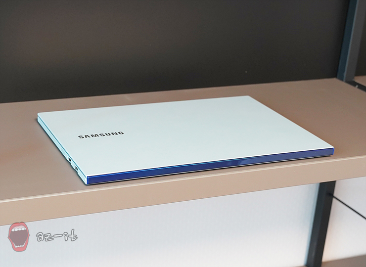 디자인부터 살펴보면 삼성 갤럭시북 이온은 빛나는 아우라 컬러와 프리즘 힌지가 탑재되어 있는 초슬림 초경량 디자인을 자랑하고 있습니다. 빛을 받는 방향에 따라 전 후면 아우라 컬러가 다채롭게 반사되어 색다른 느낌을 주는 것부터 아우라컬러가 힌지에도 적용되어 있기 때문에 컬러 포인트가 되어주고 있습니다.