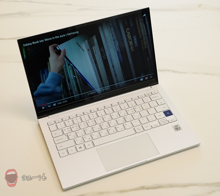노트북을 포함한 PC를 사용하는데 있어 키보드를 눌렀을 때 느껴지는 키감도 놓칠 수 없는 부분입니다. 삼성 갤럭시북 이온은 일반적인 배열을 통해 익숙하게 사용할 수 있고, 부드럽게 눌러지면서 큰 힘을 들이지 않아도 눌러지는 키감이 무척이나 마음에 들었습니다.