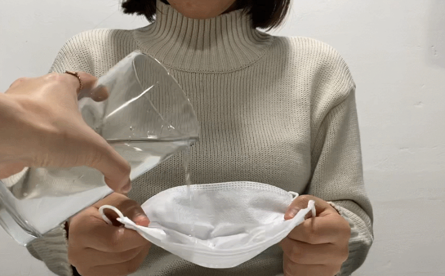 마스크 내부에 물을 부어주어도 아래로 흐르지 않고 그대로 담고 있을 정도의 방수 기능도 장점 중 하나입니다. 외부에서 유입 될 수 있는 이물질을 막아주고, 마스크 착용 후 이야기를 나누거나 기침을 하더라도 마스크 밖으로 튈 염려가 없어 어디서든 안심하고 사용하는 것이 가능합니다.
