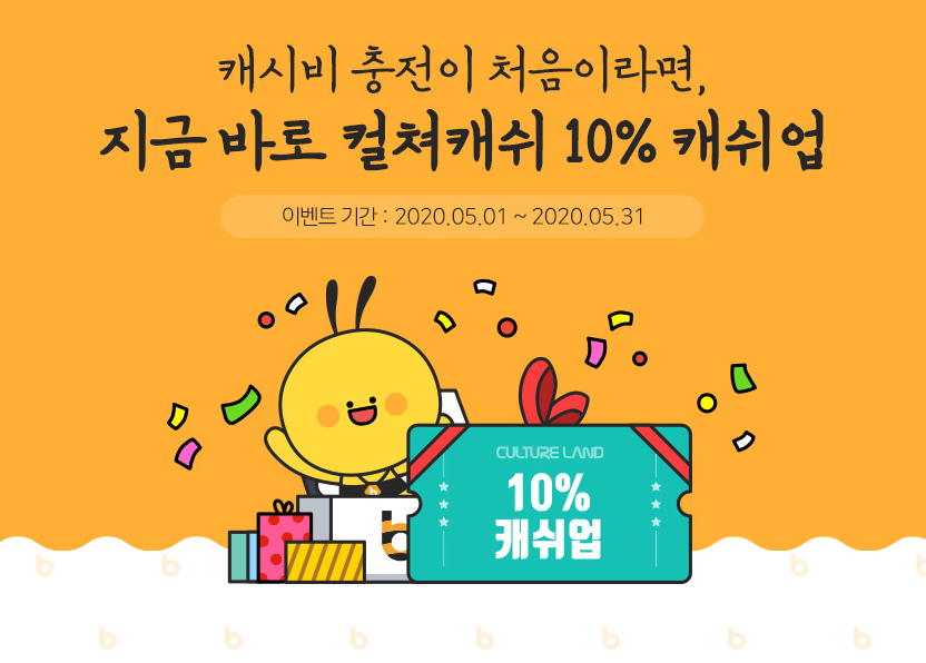 문화상품권이나 무통장입금외에도 추가 충전수단도 준비되어 있습니다. 5월 31일까지 진행되는 캐시비 캐쉬업 충전 이벤트의 경우 플라스틱, 모바일 캐시비를 이용해 컬쳐캐쉬 충전을 처음한 회원일 경우 5천원 이상 충전하면 10%에 해당하는 캐쉬업 혜택이 주어집니다.
